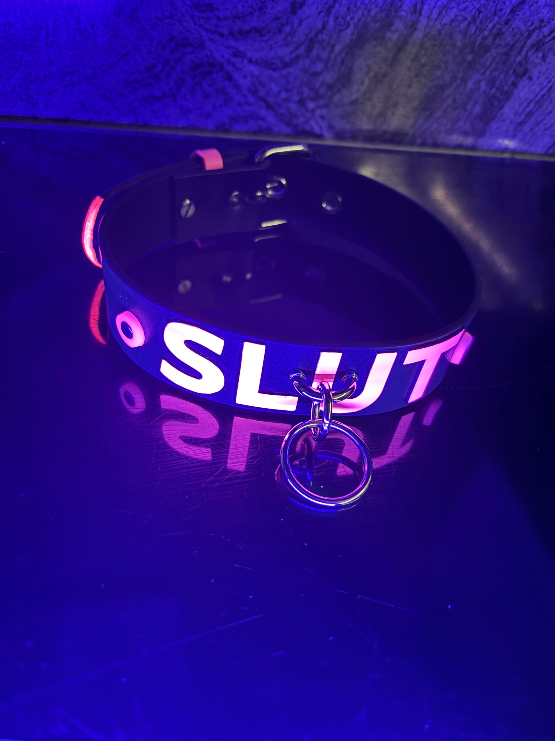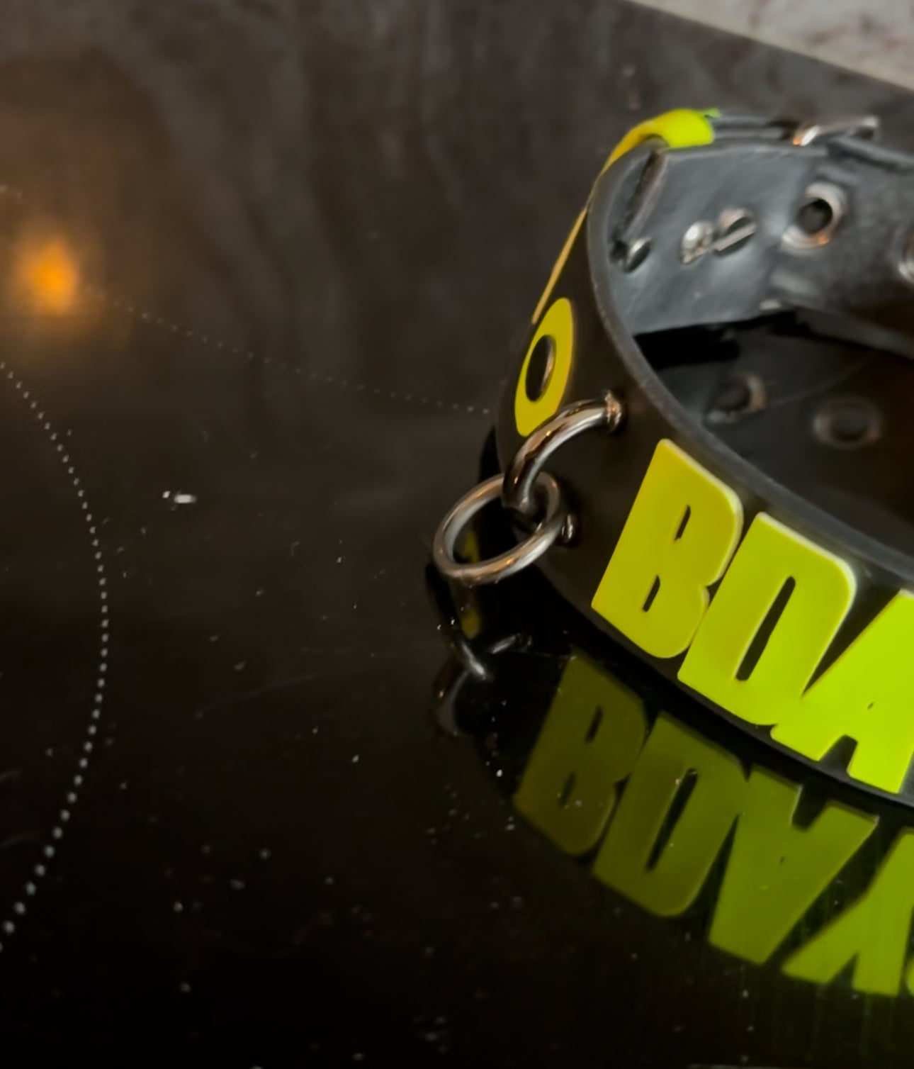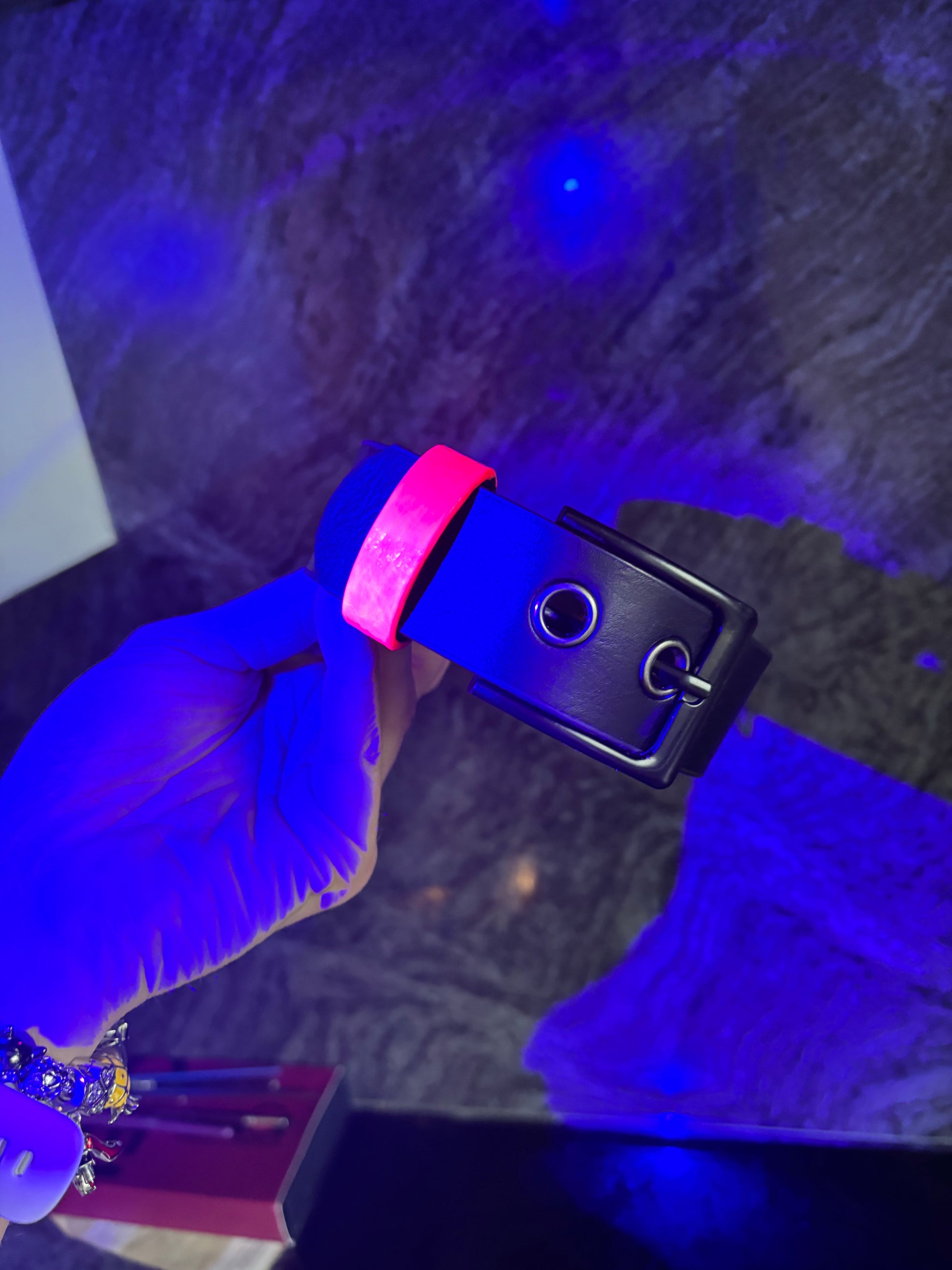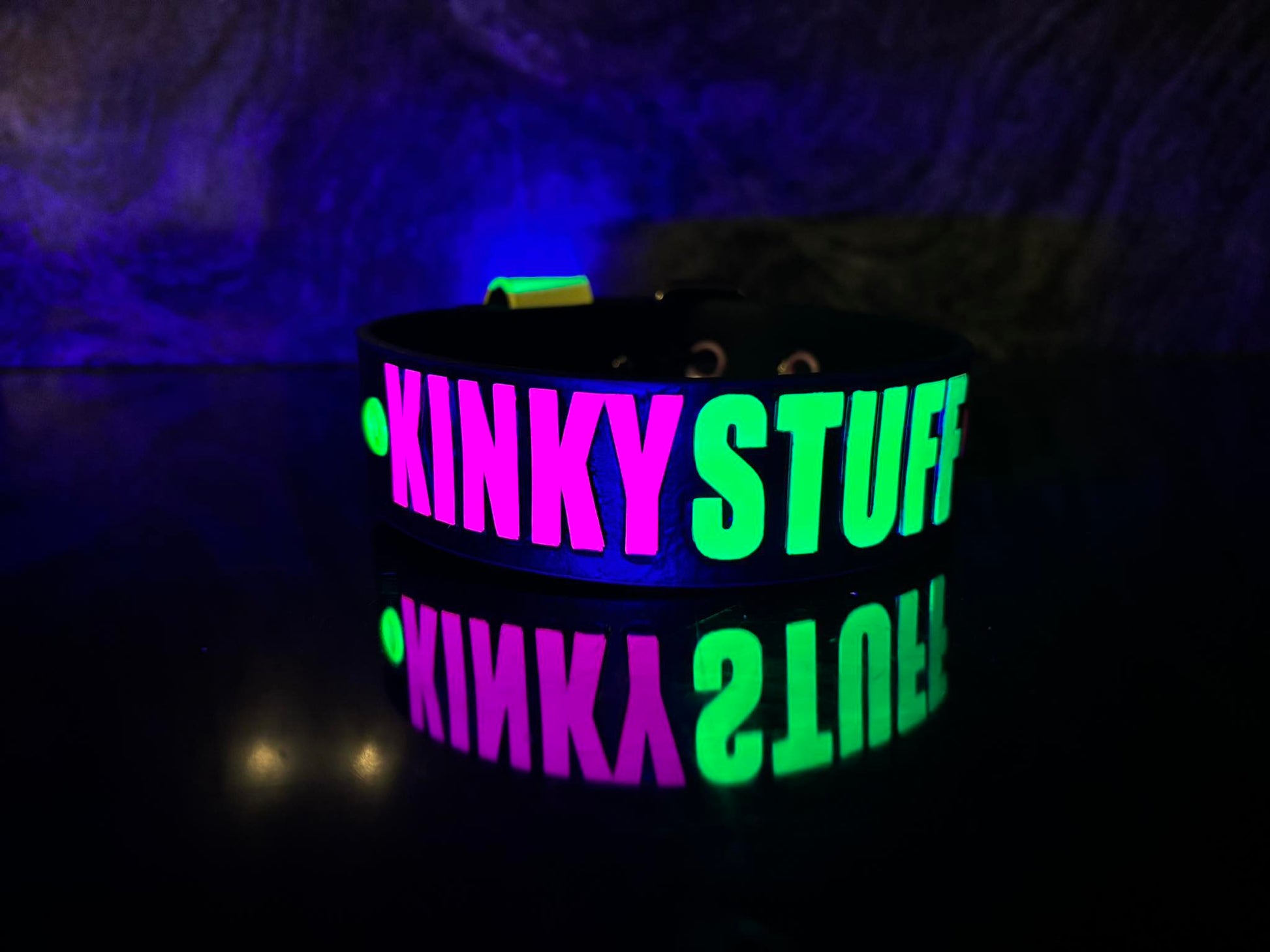 Nous sommes fiers de vous présenter le Big Black Choker (BBC) – un bracelet noir audacieux orné d'un lettrage néon accrocheur qui brille sous la lumière noire ! Disponible en cuir PU léger ou en cuir véritable robuste pour une sensation de robustesse accrue.