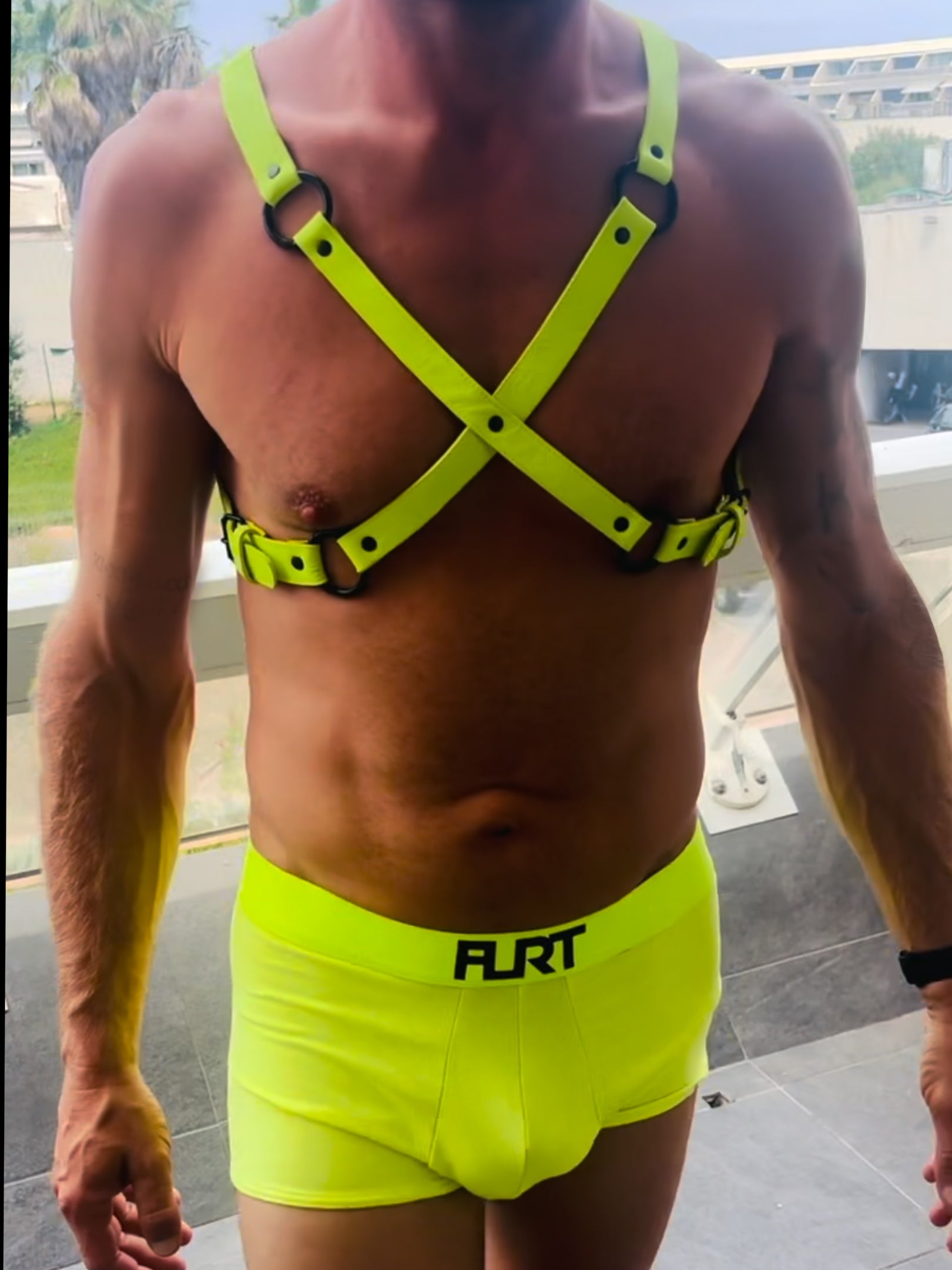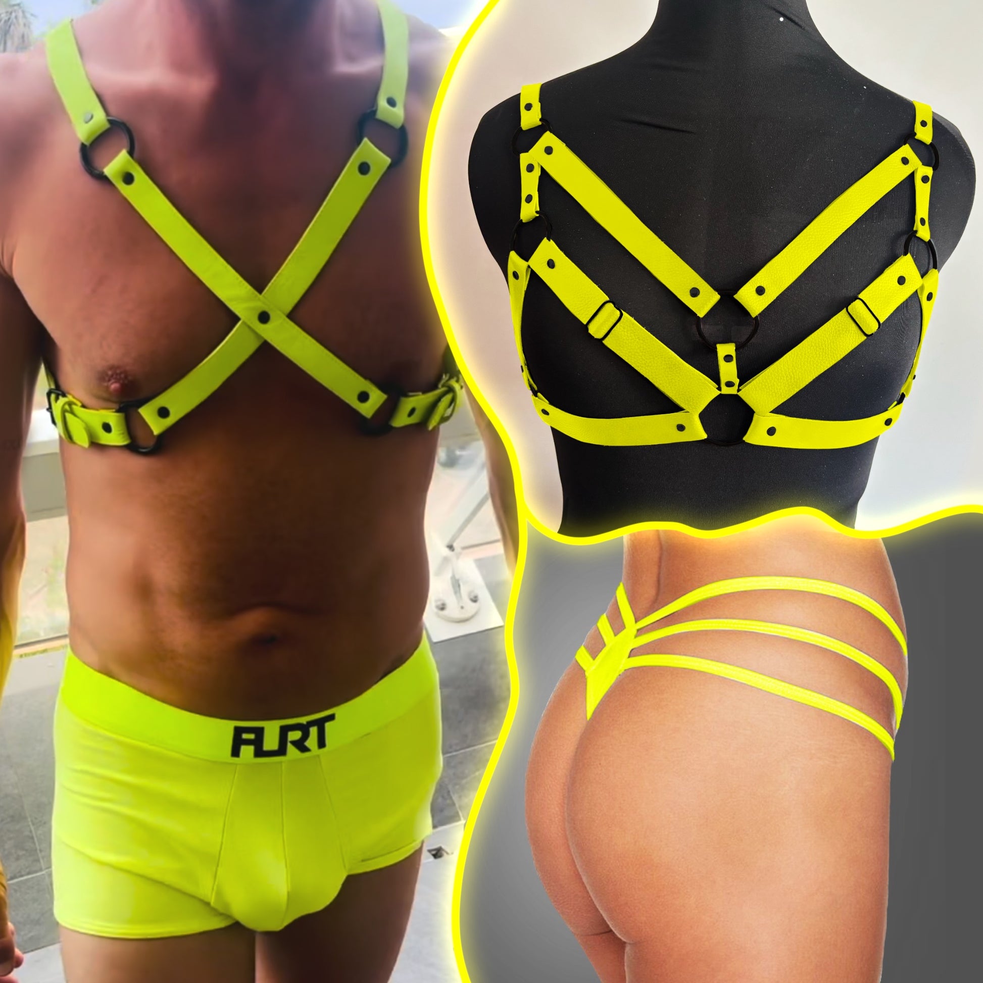✨ Un boxer jaune fluo FLRT assorti – moulant, sexy et fait pour séduire.