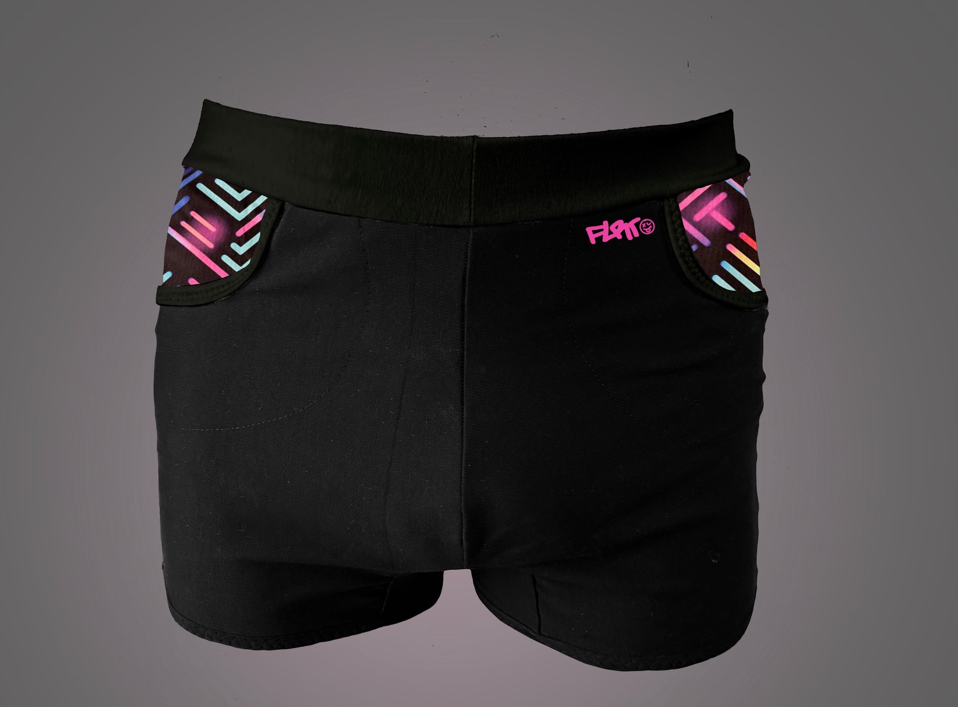 Short noir de soirée avec un atout secret : des motifs néon qui scintillent sous la lumière noire et ajoutent une touche d'audace à chacun de vos mouvements. Le short Neon Grid allie confort et détails festifs. Doux, extensible et conçu pour rester bien en place où que vous alliez.